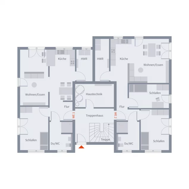 Dieses charmante Mehrfamilienhaus bietet drei individuelle Wohneinheiten, die ein modernes Wohngefühl vermitteln. Zwei barrierefreie Wohnungen im Erdgeschoss ermöglichen Menschen mit eingeschränkter Mobilität einfachen Zugang und überzeugen durch eine durchdachte und offene Raumaufteilung. Das exklusive Penthouse im Obergeschoss ist mit knapp 157 m² das Highlight des Hauses und beeindruckt zusätzlich mit zwei Balkonen und atemberaubenden Ausblicken. Hier können Bewohner maximalen Wohnkomfort genießen. Ein gemeinsamer Hausarbeitsraum ist im Erdgeschoss zu finden. Insgesamt vereint das Haus Komfort, Zugänglichkeit und stilvolles Wohnen.