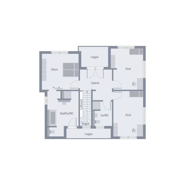 Eine Galerie verbindet die Bereiche, ohne sie zu vermischen.