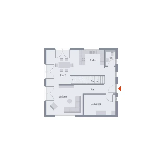 Zeitlose Eleganz außen, Weite und ein besonderes Raumgefühl innen - das ist unser Design 10. Unter dem Satteldach warten hier rund 135 m² auf zwei Ebenen darauf, bezogen und mit Leben gefüllt zu werden. Im Erdgeschoss ist Offenheit Trumpf: Hier erstreckt sich der große Wohn-Ess-Koch-Bereich nahezu über die gesamte Ebene, wird nur durch die zentral platzierte Treppe von der Diele abgetrennt. Das Ergebnis: ein lichtdurchfluteter, einladender und großzügiger Bereich zum Wohlfühlen und Treffen. Im Eingangsbereich stehen zudem ein kleines Gäste-WC sowie ein großer Hauswirtschaftsraum zur Verfügung. Über die mittig gelegene Treppe geht es ins Obergeschoss. Hier ist ausreichend Raum für Eltern und bis zu zwei Kinder. Die Eltern verfügen über ein großzügig geschnittenes Reich mit separatem Ankleideraum, zwei große Kinderzimmer lassen ebenfalls keine Wünsche offen. Abgerundet wird das Raumangebot in der oberen Etage durch ein großes Badezimmer mit Dusche, Wanne und WC.