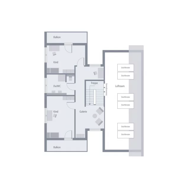 Bei unserem Pult 30 verbindet sich eine außergewöhnliche Fassadengestaltung mit einem einzigartigen Wohnerlebnis. Die äußere Gestaltung wird durch das versetzte Pultdach und den Rückversatz eines Bauteils geprägt, der durch zwei überdachte Balkone nicht nur ästhetische, sondern auch praktische Wohnvorteile bietet. Diese Vorteile setzen sich im Innenbereich fort. Im Mittelpunkt steht der großzügige Wohn-Ess-Koch-Bereich mit über 55 m², der durch zahlreiche Fenster und hohe Decken noch luftiger wirkt. Der Rückzugsort für die Eltern befindet sich im Erdgeschoss und umfasst einen Schlafbereich, ein Ankleidezimmer, ein Badezimmer sowie eine separate Toilette. Ein Büro und ein Gäste-WC vervollständigen das Raumangebot im Erdgeschoss. Im oberen Stockwerk finden sich die Kinderzimmer, die durch zwei Balkone und eine große Galerie beeindrucken. Pult 30 - mehr als nur ein Zuhause.