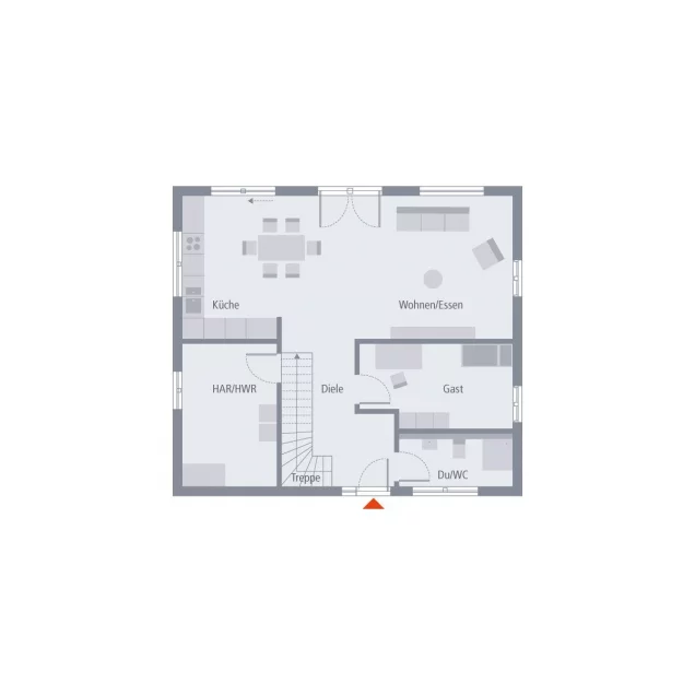 Schlichte Eleganz trifft auf Wohnlichkeit: Unser Design 14 ist die perfekte Lösung für diejenigen, die ein zeitloses Design bevorzugen und die dennoch im Hinblick auf Wohnkomfort und Ausstattung keine Abstriche machen möchten. Das Einfamilienhaus erstreckt sich über eine Fläche von rund 158 m² über zwei Etagen und bietet unter dem Satteldach ausreichend Raum für Singles, Paare und Familien. Im Erdgeschoss befindet sich der lichtdurchflutete Wohn-Ess-Koch-Bereich, der durch große Fensterfronten und den unmittelbaren Zugang zu Terrasse und Garten besonders einladend wirkt. Außerdem Parterre: Hauswirtschaftsraum, Gäste-WC und ein weiteres Zimmer, das für Gäste oder als Büro genutzt werden kann. Über die Treppe im offen gestalteten Dielenbereich führt der Weg ins Obergeschoss, wo sich zugleich die Rückzugsorte der Hausherren befinden. Neben einem Elternschlafzimmer sind hier zwei nahezu identisch geschnittene Kinderzimmer sowie ein großes Tageslichtbad mit Wanne, Dusche und WC.