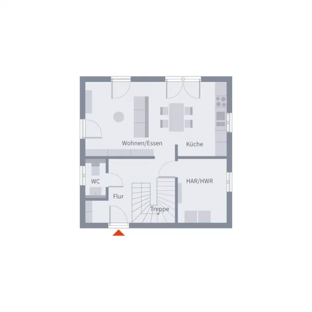 Man betritt das Haus und gelangt in den Wohnbereich.