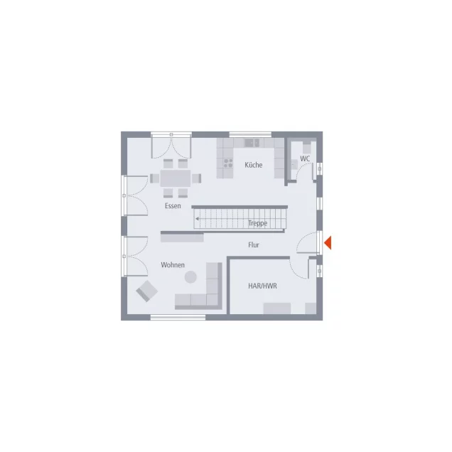 Zeitlose Eleganz von außen, großzügiger Raum und ein besonderes Raumgefühl von innen - das zeichnet unser Design 10 aus. Unter dem Satteldach erwarten etwa 135 m² auf zwei Ebenen darauf, bezogen und mit Leben gefüllt zu werden. Im Erdgeschoss steht Offenheit im Mittelpunkt: Der großzügige Wohn-Ess-Koch-Bereich erstreckt sich fast über die gesamte Ebene und wird lediglich durch die zentral platzierte Treppe von der Diele getrennt. Das Ergebnis ist ein heller, einladender und großzügiger Raum, ideal zum Wohlfühlen und Zusammenkommen. Im Eingangsbereich befinden sich zudem ein kleines Gäste-WC sowie ein großer Hauswirtschaftsraum. Über die mittig platzierte Treppe gelangt man ins Obergeschoss. Hier gibt es ausreichend Platz für Eltern und bis zu zwei Kinder. Die Eltern genießen ein großzügig gestaltetes Schlafzimmer mit separatem Ankleideraum, während zwei große Kinderzimmer ebenfalls keine Wünsche offenlassen. Das Raumangebot in der oberen Etage wird durch ein geräumiges Badezimmer mit Dusche, Badewanne und WC abgerundet.