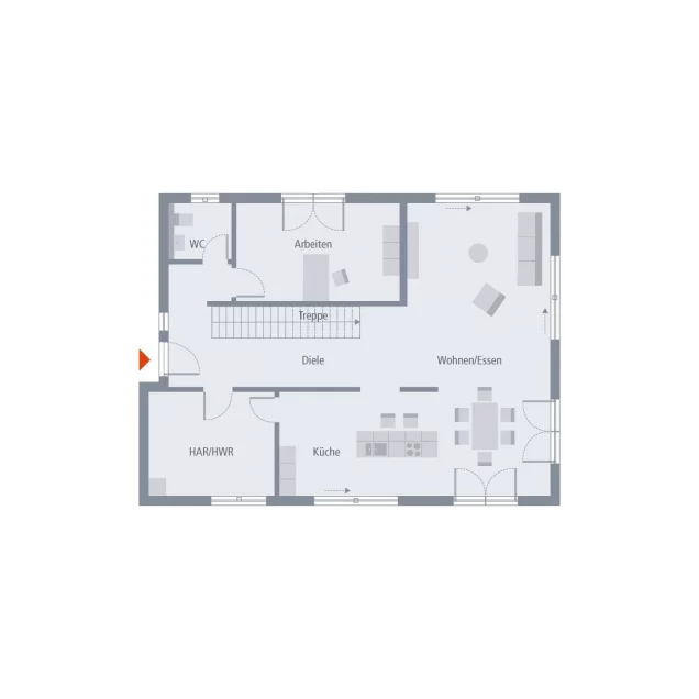 Man erkennt das Haus bereits von außen klar.