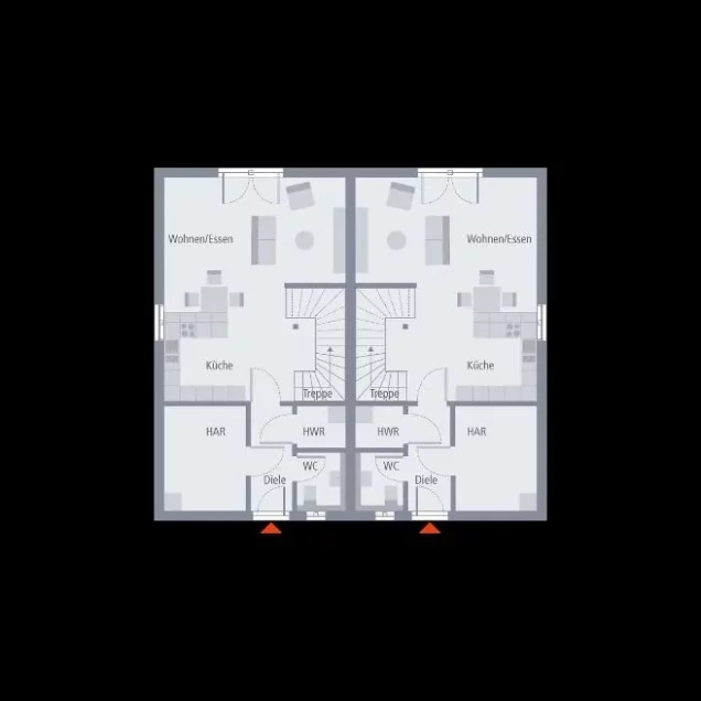 Haus mit 2 Haushälften über 3 Etagen ! Je Familie/Haushälfte 477.000,-EUR mit halben Grundstück !