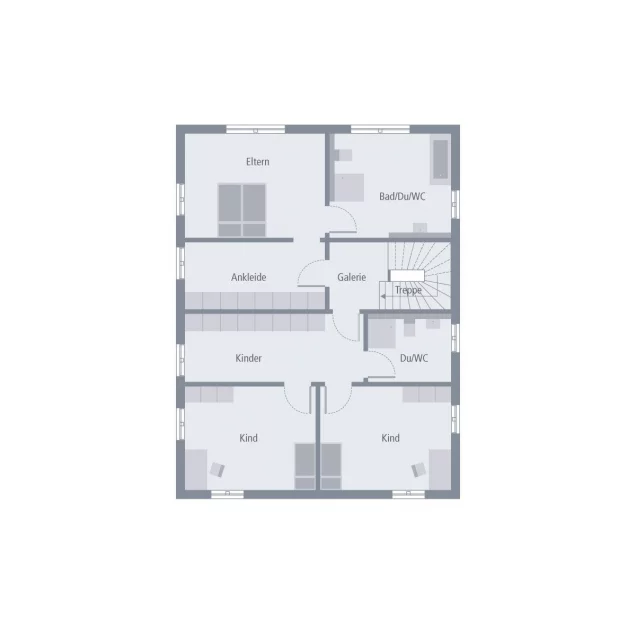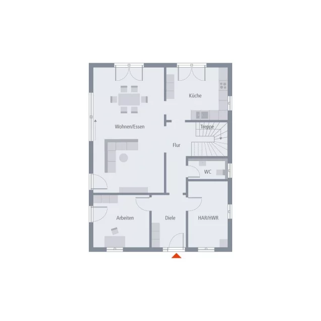 Die Fassade besticht durch ihre zweifarbige Gestaltung und die klare Form- und Liniengebung. Auch der überdachte Terrassenbereich auf der Gartenseite fügt sich optimal ein. Im Erdgeschoss dominiert der große Wohn-Ess-Bereich mit direktem Zugang zum Garten durch die große Schiebetür. Die Küche ist räumlich getrennt, ist aber direkt mit dem Esszimmer verbunden. Außerdem Parterre: Arbeitszimmer, Hauswirtschaftsraum sowie Gäste-WC. Das Dachgeschoss ist zweigeteilt: in das Wohlfühlparadies der Eltern - mit Schlaf- und Ankleidezimmer und einem geräumigen Bad mit Wanne, Dusche und WC - sowie in einen großen Bereich für die Kinder. Zwei Schlafzimmer, ein gemeinsamer Spielraum und ein Bad stehen zur Verfügung. Dank des Spitzbodens erstreckt sich die Wohnfläche über drei Etagen, wodurch im oberen Stockwerk ein perfekter Rückzugsort entsteht. Dort befindet sich ein großes Zimmer, das zum Arbeiten, für Kinder oder Gäste genutzt werden kann. Großes Plus: Auch hier gibt es ein eigenes Badezimmer. Design 30 bietet Wohnkomfort bis unters Dach.