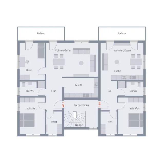 Dieses moderne Mehrfamilienhaus bietet vier unterschiedlich große, großzügig und offen gestaltete Wohneinheiten, die sich ideal für Familien, Paare oder Einzelpersonen eignen. Im Erdgeschoss befinden sich zwei barrierefreie Wohnungen, um den Bedürfnissen von Menschen mit eingeschränkter Mobilität gerecht zu werden. Diese Einheiten bieten leichten Zugang und komfortables Wohnen ohne Hindernisse. Beide Erdgeschosswohnungen bestechen durch ein offenes Raumkonzept, das viel Platz für individuelle Gestaltungsideen lassen. Im Obergeschoss befinden sich die beiden anderen Wohneinheiten, die jeweils über einen eigenen Balkon verfügen. Diese bieten einen wunderbaren Rückzugsort im Freien und laden dazu ein, die frische Luft zu genießen. Alle Einheiten zeichnen sich durch helle, lichtdurchflutete Räume aus, die eine freundliche und einladende Atmosphäre schaffen.