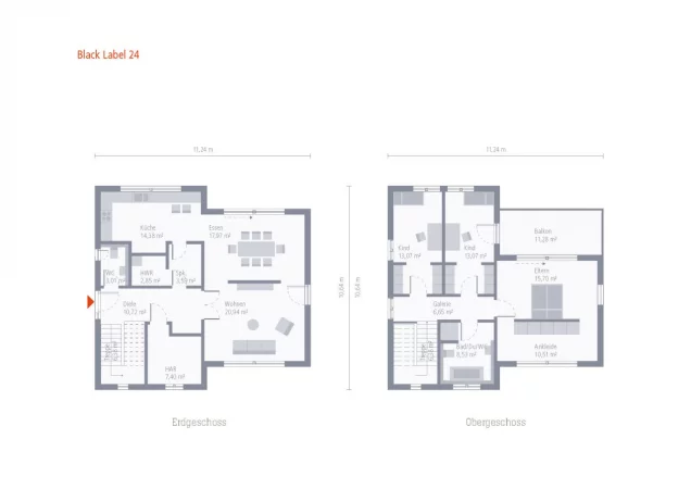 Souverän und imposant präsentiert sich Black Label 24. Die versetzten Elemente an der Fassade und der optisch eingesetzte Würfel runden das stilvolle Erscheinungsbild gekonnt ab. Hell und weitläufig erstreckt sich die untere Etage mit großzügigem Raumkonzept. Auf mehr als 50 m2 heißt es wohnen, kochen, sich treffen und entspannt leben. Speise- und Wäschekammer, WC, die großflächige Diele und der Hauswirtschaftsraum komplettieren das Erdgeschoss. Im oberen Bereich genießen die Eltern im modernen Schlafbereich mit abgetrennter Ankleide freie Aussicht und direkten Zugang auf den Balkon. Kinder-, Arbeits- oder Gästezimmer: auch hierfür ist Platz im Bauhaus.