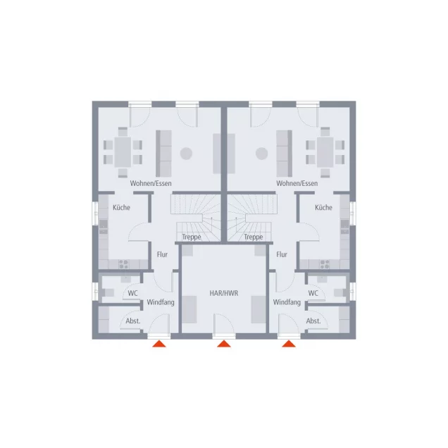 Perfekt in jedes ländliche und urbane Wohnumfeld fügt sich unser Zinshaus 4 ein. Das klassische Stadthaus mit zeitlos-elegantem Walmdach verfügt über zwei identische Wohnungen, die sich jeweils über zwei Etagen erstrecken. Besonders praktisch: der von außen zugängliche, gemeinsam genutzte Hauswirtschaftsraum. Über zwei separate Eingänge und einen unmittelbar dahinter gelegenen Windfang geht es in die mehr als 110 m² große Wohnung. Im vorderen Bereich befinden sich ein Gäste-WC sowie ein Abstellraum. Der sich anschließende Flur führt direkt in das große und lichtdurchflutete Wohn-Ess-Zimmer, an den sich eine geräumige Küche anschließt. Eine Wendeltreppe verbindet die beiden Stockwerke miteinander und führt in den Erholungsbereich für die ganze Familie. Hier ist Platz für zwei Kinderzimmer sowie ein geräumiges Elternschlafzimmer mit einem separaten Ankleidebereich. Ein Badezimmer mit Wanne, Dusche und WC rundet das Raumangebot im Obergeschoss ab. Zinshaus 4: Zeitlos-elegante Architektur und maximaler Wohnkomfort.