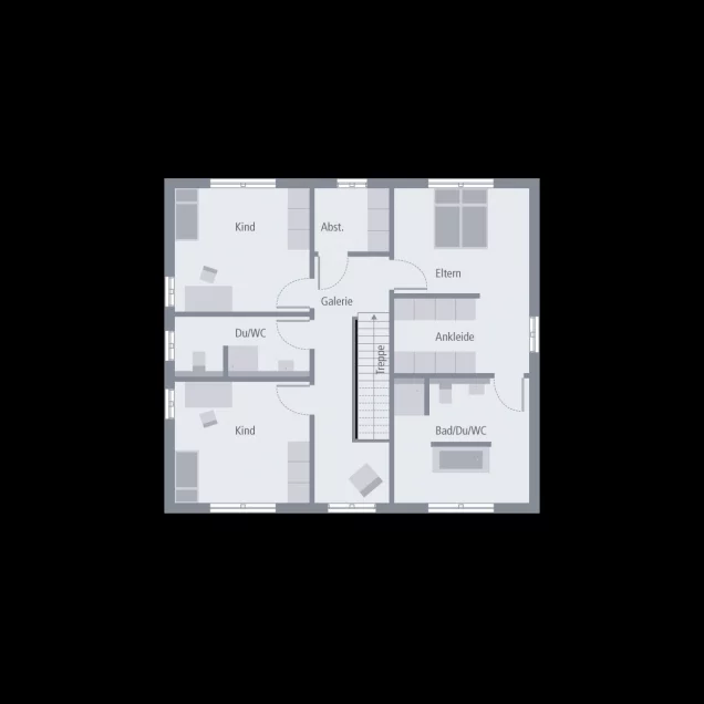 Groß, zeitlos-elegant und bis ins kleinste Detail durchdacht - das ist unsere Stadtvilla 16. Auf einer Fläche von mehr als 180 m2, verteilt auf zwei Ebenen, ist ausreichend Platz zum Leben, Arbeiten und Relaxen. Zentraler Ort der Begegnung für Familie und Freunde ist der rund 50 m² große Wohn-Ess-Koch-Bereich. Große Fensterfronten ermöglichen einen direkten Zugang zum Garten und sorgen für maximalen Lichteinfall. Besonders praktisch: Direkt an die Küche schließen sich eine Speisekammer sowie der große Hauswirtschaftsraum an. Außerdem im Erdgeschoss: komfortables Arbeitszimmer und Gäste-WC. Über den offenen Dielenbereich geht es ins Obergeschoss und damit in den Rückzugsort für die Familienmitglieder. Die Eltern verfügen hier über eine Wohlfühloase mit großem Schlafbereich, separatem Ankleidezimmer und sich unmittelbar anschließendem Badezimmer mit Wanne, Dusche und WC. Gegenüber: das Reich der Kinder. Die beiden geräumigen Zimmer werden durch ein eigenes Bad voneinander getrennt. Abgerundet wird das Raumangebot durch einen praktischen Abstellraum.