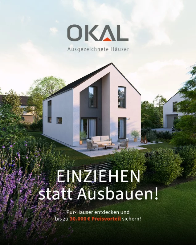 In jedem unserer Häuser steckt die Erfahrung aus über 90 Jahren Pionierarbeit. In vielen Bereichen waren und sind wir Vorreiter, stets visionär und innovativ. Doch bei allem, was wir tun, steht eins immer an oberster Stelle: der Wunsch des Kunden. Bauen mit OKAL Haus - Preissicherheit, Fertigstellungsgarantie & alles aus einer Hand. Lassen Sie uns gemeinsam Ihr neues Zuhause planen! Hinweis: Zur Angabe Ihrer vollständigen Kontaktdaten nutzen Sie bitte, gemäß den Bestimmungen der Europäischen Datenschutzgrundverordnung (DSGVO) und des Bundesdatenschutzgesetzes (BDSG), das Kontaktformular neben der Anzeige.