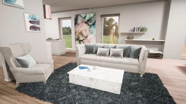 Man betritt das Haus und gelangt in eine große Wohnzone.