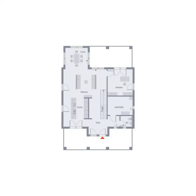 Ein Arbeitsraum liegt ebenerdig.