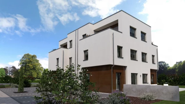 Vier Wohneinheiten, die nichts an Komfort und architektonischen Highlights vermissen lassen - das ist unser Zinshaus 7. Das dreigeschossige Gebäude mit modernem Flachdach bietet viele Optionen: Komplettvermietung für eine maximale Rendite oder Teilvermietung mit der Möglichkeit, eine der Wohneinheiten selbst zu beziehen. Jeweils zwei Wohnungen des Doppelhauses sind baugleich. Die beiden Einliegerwohnungen parterre sind über einen gemeinsam genutzten Flur mit separatem HWR erreichbar und vereinen alles, was Singles oder Paare zum komfortablen Wohnen benötigen: ein großes und lichtdurchflutetes Wohn-Ess-Zimmer, separate Küche, Schlafzimmer sowie Bad. Einen loftähnlichen Charakter weisen die beiden darüberliegenden Wohnungen auf, die sich jeweils über zwei Etagen erstrecken. Den Mittelpunkt des ersten Stockwerks bildet der geräumige Essbereich, an den sich die Küche direkt anschließt. Außerdem in dieser Etage: ein großes Kinderzimmer, Badezimmer sowie ein über den gemeinsam genutzten Flur zugänglicher HWR. Unterm Dach: ein großes Wohnzimmer mit Zugang zu zwei großen Balkonen sowie das Reich der Eltern - mit Schlafbereich, Ankleide- und Badezimmer.